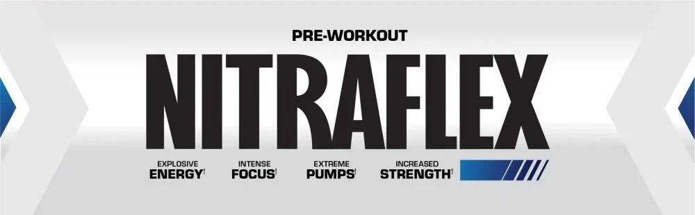Clinically Studied CFB & Vasoactive Compounds Highest Concentration 1-Scoop Potency Raw Muscle Building Power* This new breed of concentrate is an annihilating force to reckon with. Regenerating new muscle at an anabolically-expedited rate with intensity beyond belief is what Nitraflex is all about. To make you the predatory beast whether on stage, at the gym, or when strength needs to be summoned up full-tilt. How does "seething intensity" look and feel? Start taking Nitraflex today to find out. The size you get from tearing down flesh from within will be living proof. Physiological Basis “Reactive hyperemia” describes the increase in muscle blood flow that occurs during high-intensity resistance exercise and produces the “pump” associated with increases in muscle size. The Nitraflex pre-training formula contains ingredients that in vitro, animal and clinical studies suggest possess properties that may help advanced athletes maximize energy, intensity, vascularity and reactive hyperemia (pumps) during their workouts, and provide long-term support of testosterone and nitric oxide levels in the healthy range when used as directed.* Nitraflex Properties 1-Scoop Potency Nitraflex is so potent, only one serving is necessary. Do not exceed one scoop in a single 24-hour period. High Citrulline: Arginine Ratio Arginine is a proven precursor to nitric oxide (NO), a vasodilator. What most people don't know is that arginine supplementation stimulates the activity of arginase, an enzyme that breaks down arginine. Over time, this may actually result in reduced arginine and NO levels, in turn causing your pre-workout formula to stop working. Research suggests that supplementing with a high ratio of citrulline to arginine may reduce this risk by avoiding overstimulation of arginase.* Effective Doses of Beta-Alanine The clinically-proven performance enhancer beta-alanine was not "fairy dusted" in this formula. Rather, we added an exceptionally powerful dose that you will feel working following your very first serving. Creatine Free Creatine causes water retention, which can make achieving a dry, hard muscular look even more difficult. Sometimes creatine is added to products precisely for this reason. (When you see yourself getting bloated, you may be fooled into thinking the product is "working.") We left it out of Nitraflex precisely for this reason. Thus making Nitraflex ideal for pre-contest prep.* Cognitive Enhancers Nitraflex contains unique ratios of scientifically validated compounds that help you remain alert, intense and focused while you're flying from set to set with veins fully dilated and muscles pumped to the extreme.*