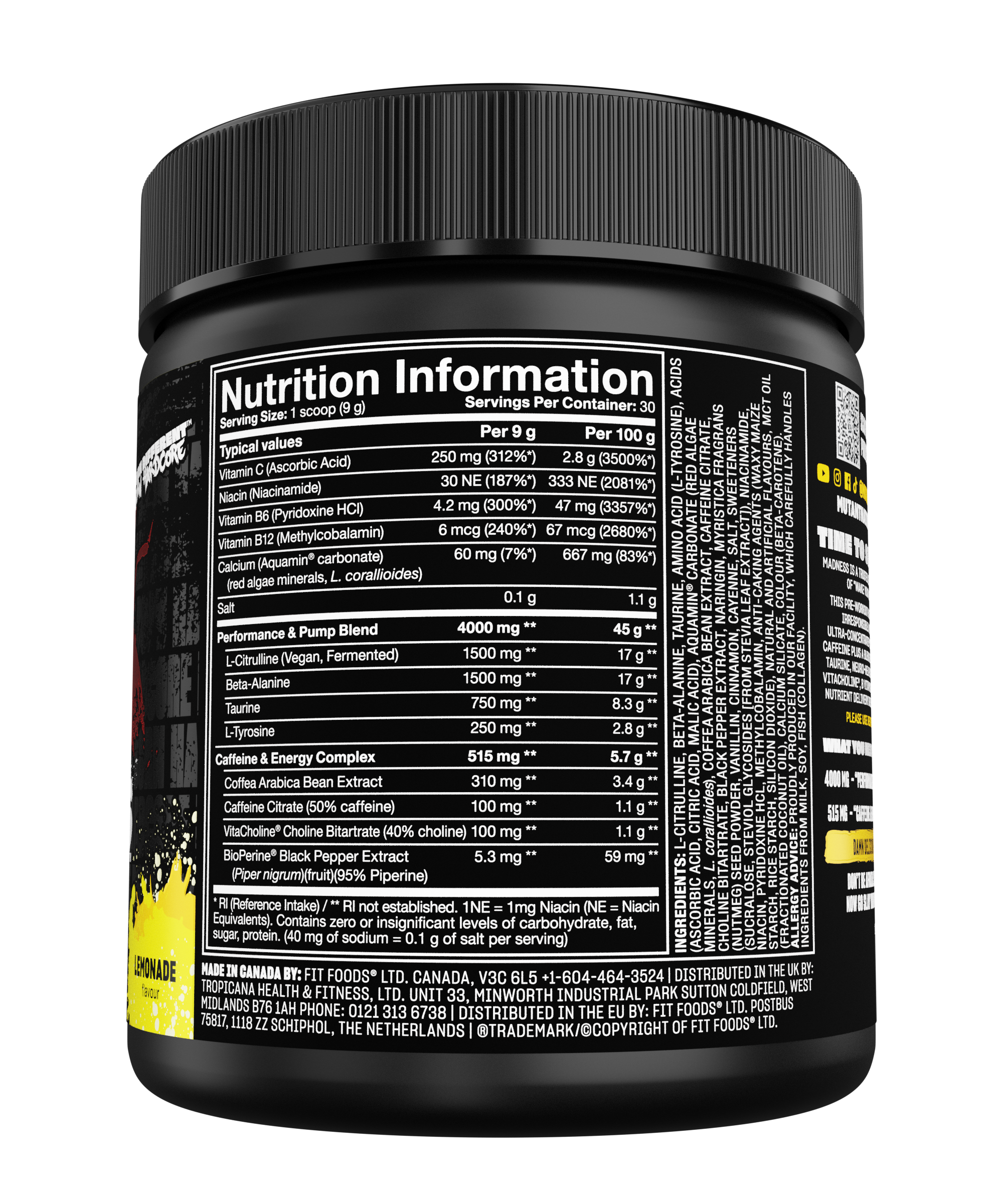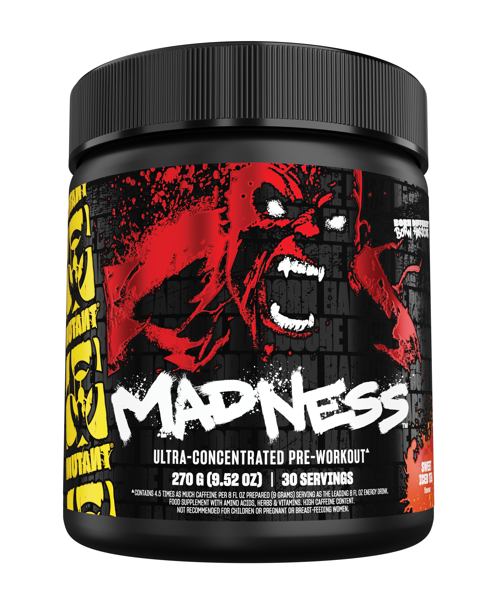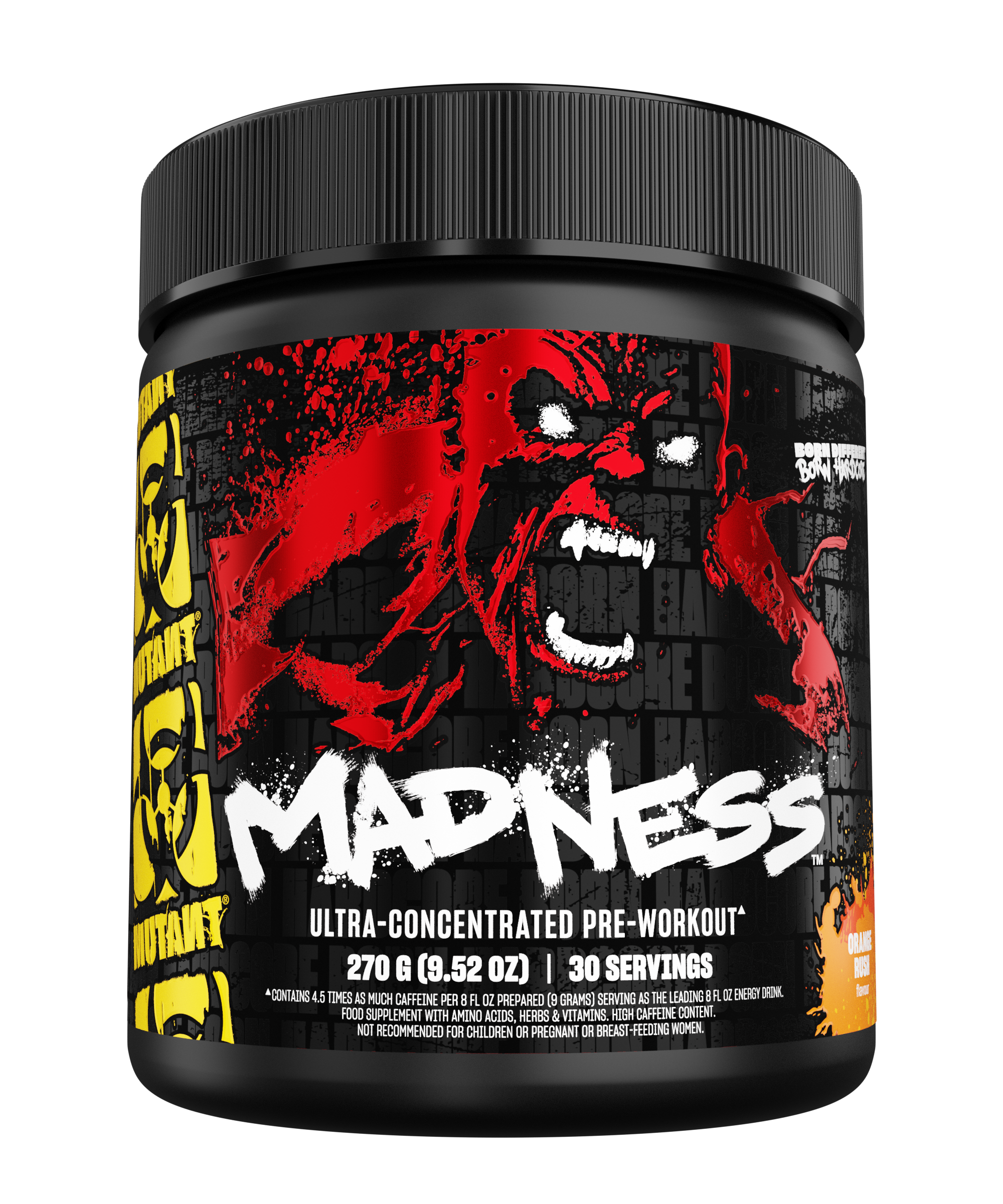 TIME TO SLAY IT. Madness is a trusted slap in the face of “wake your ass up”! This pre-workout has borderline irresponsible amounts of ultra-concentrated▲ dual-sourced caffeine plus a blend of L-Citrulline Beta-Alanine, Taurine, neuro-helping L-Tyrosine & Vitacholine®, B Vitamins, and the boss nutrient delivery driver BioPerine®.† From the PERFORMANCE & PUMP BLEND to the CAFFEINE & ENERGY COMPLEX to the EXTRA VITAMINS AND ELECTROLYTES, your workouts will never be the same. These powerhouse ingredients ensure explosive energy to power through the most grueling workouts. Elevate your performance, conquer your limits, and achieve the gains you've always dreamed of with our ultimate pre-workout supplement. Dominate the iron, because greatness demands no less. BORDERLINE IRRESPONSIBLE AMOUNTS OF ULTRA-CONCENTRATED AWESOME. WHY WE CREATED MUTANT® MADNESS™ Building more muscle requires the intense stimuli of insane workouts. If you can’t push past your energy limitations you won’t stimulate more muscle growth. So we developed a pre-workout, SO F’ING INTENSE, WE HAD NO CHOICE BUT TO CALL IT “MADNESS™”. HOW DO I USE MUTANT MADNESS? Directions for healthy adults only: mix ½ to 1 serving with 8–16 fl oz (250–500 ml) of water 15-45 minutes before workouts. (use 1/2 serving or less first to assess tolerance). Use only as directed. Follow all the warnings on the label before use. Do not consume within 4 hours before bedtime. Never exceed two servings per 24 hours. CAN I STACK MUTANT MADNESS WITH OTHER MUTANT PRODUCTS? Absolutely! We highly recommend stacking MUTANT MADNESS with an amino acid powder such as MUTANT GEAAR or MUTANT HARDCORE BCAA. And it’s also a great idea to add a serving of creatine such as MUTANT CREAKONG. Stacking MADNESS with both products will help support the additional power and strength benefits you need during your workouts. CAN I TAKE MORE THAN THE RECOMMENDED SERVING SIZE? This is the part where we could joke around and be clever. But we won’t. Never consume more than the recommended directions for use on the label and never exceed 2 servings within a 24-hour period. Don’t even think about it. DOES MUTANT MADNESS HARDEN OR CLUMP LIKE ALMOST EVERY OTHER PRE-WORKOUT SUPPLEMENT? Many pre-workout powders are highly susceptible to clumping due to the nature of popular ingredients such as L-Citrulline, Beta-Alanine, and Taurine. Exposure to heat and humidity also contributes to clumping and hardening. MUTANT MADNESS is formulated to include tiny amounts of food-based ingredients, such as waxy maize and rice starch, to help keep the powder as dry and fluffy as possible and prevent it from hardening or clumping. In addition, always keep the lid on tight and keep your MUTANT MADNESS stored in a cool, dry place. TIP: Always shake your bottle of MUTANT MADNESS before using, especially if it hasn’t been opened for a while. This helps ensure all the ingredients are mixed evenly so that you get an accurate dose every time. Giving the powder a minute to settle down immediately after shaking it up is a good idea.