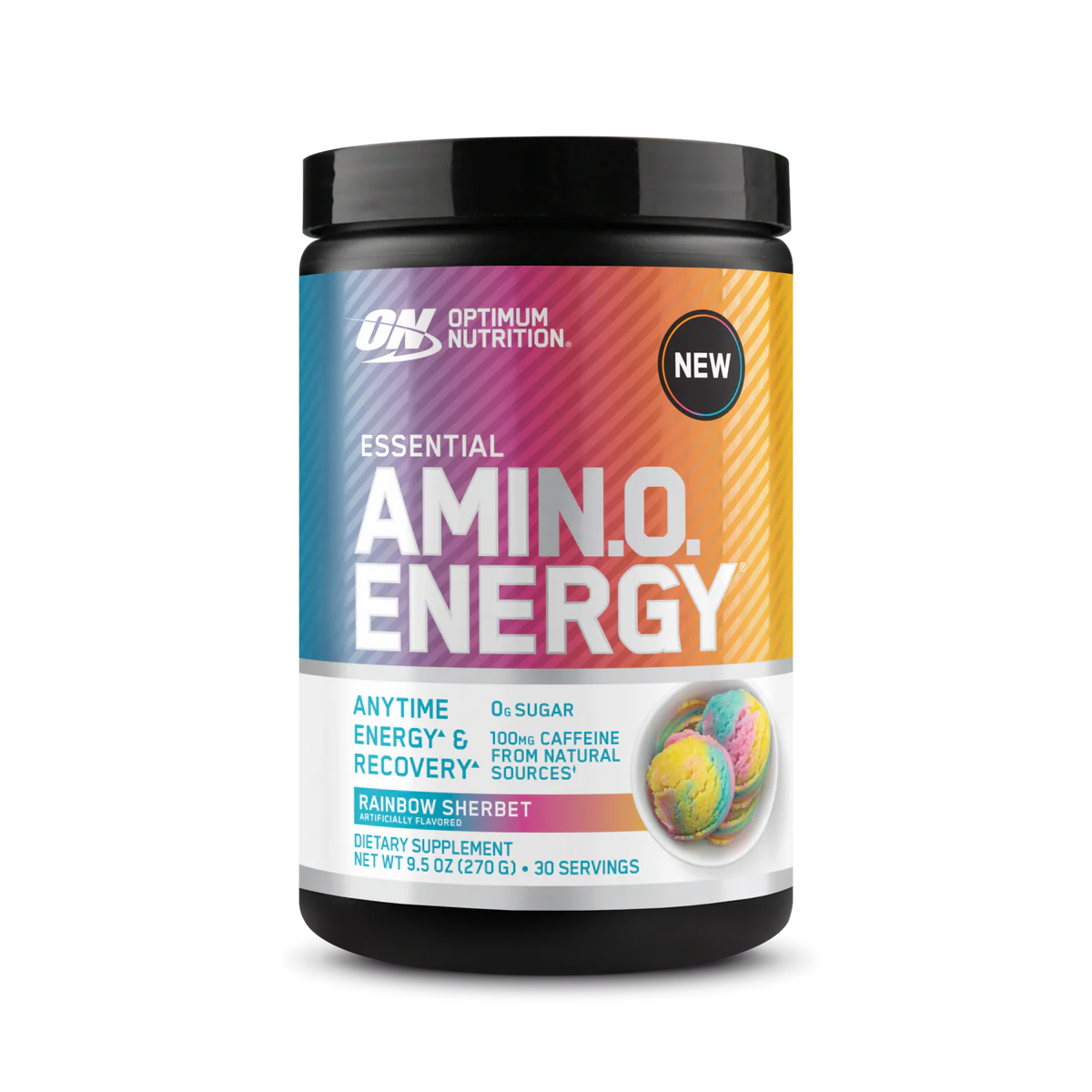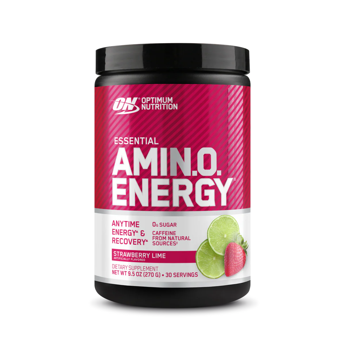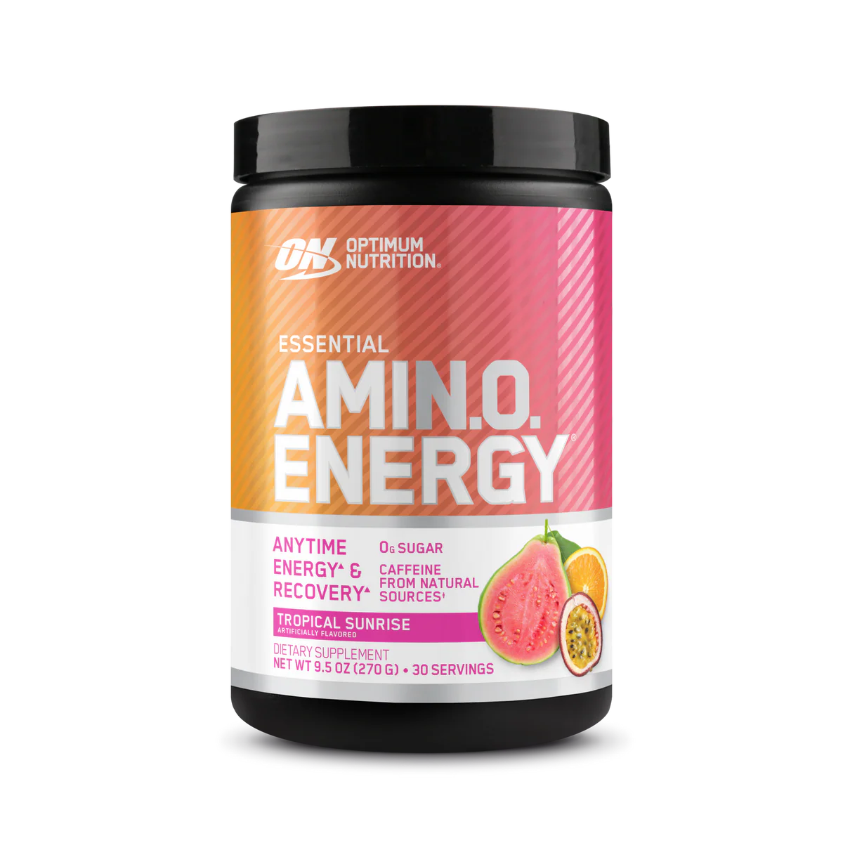 Mix up ESSENTIAL AMIN.O. ENERGY anytime you want a boost of energy, focus and muscle recovery support. Each serving provides 100 mg of caffeine from natural sources to support energy and focus along with 5 grams of amino acids for muscle support.* Beyond The Basics: 100 mg of Caffeine per Serving from Coffee Bean and/or Tea Leaf 5 Grams of Amino Acids per Serving for Muscle Recovery Support* 5 to 10 Calories Per Serving with Zero Sugar Essential Amino Acid Delivery* Supports Energy, Focus & Muscle Support*