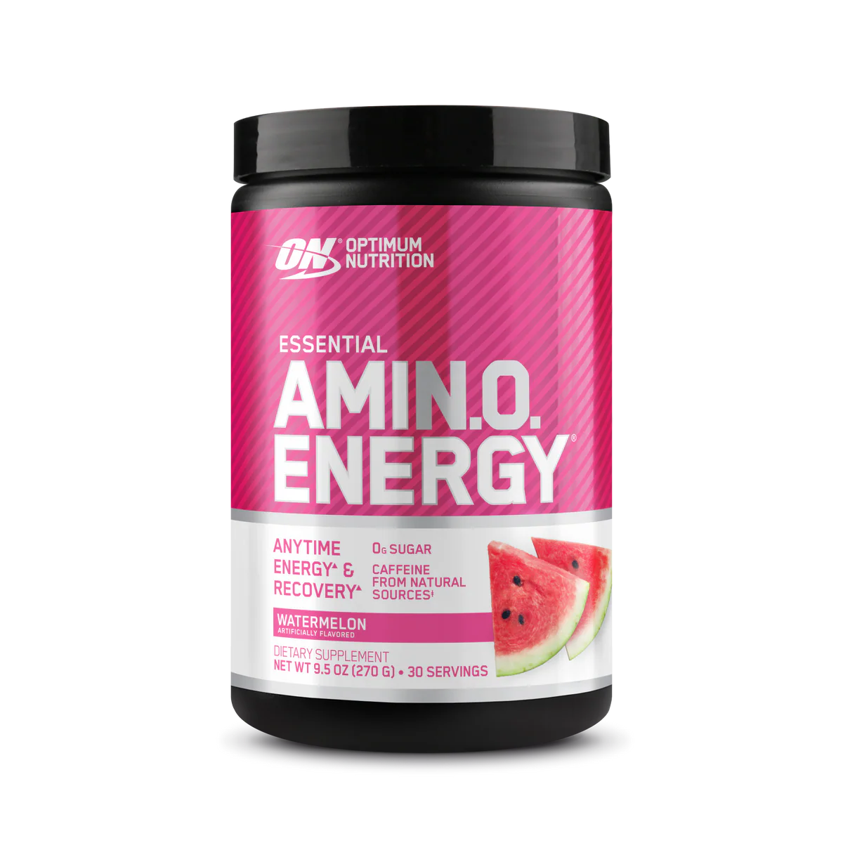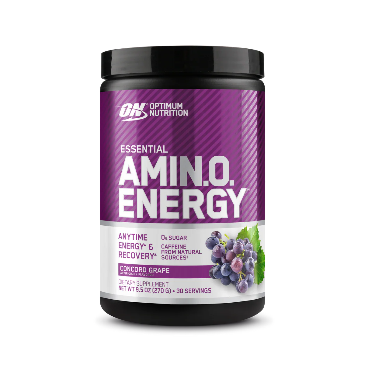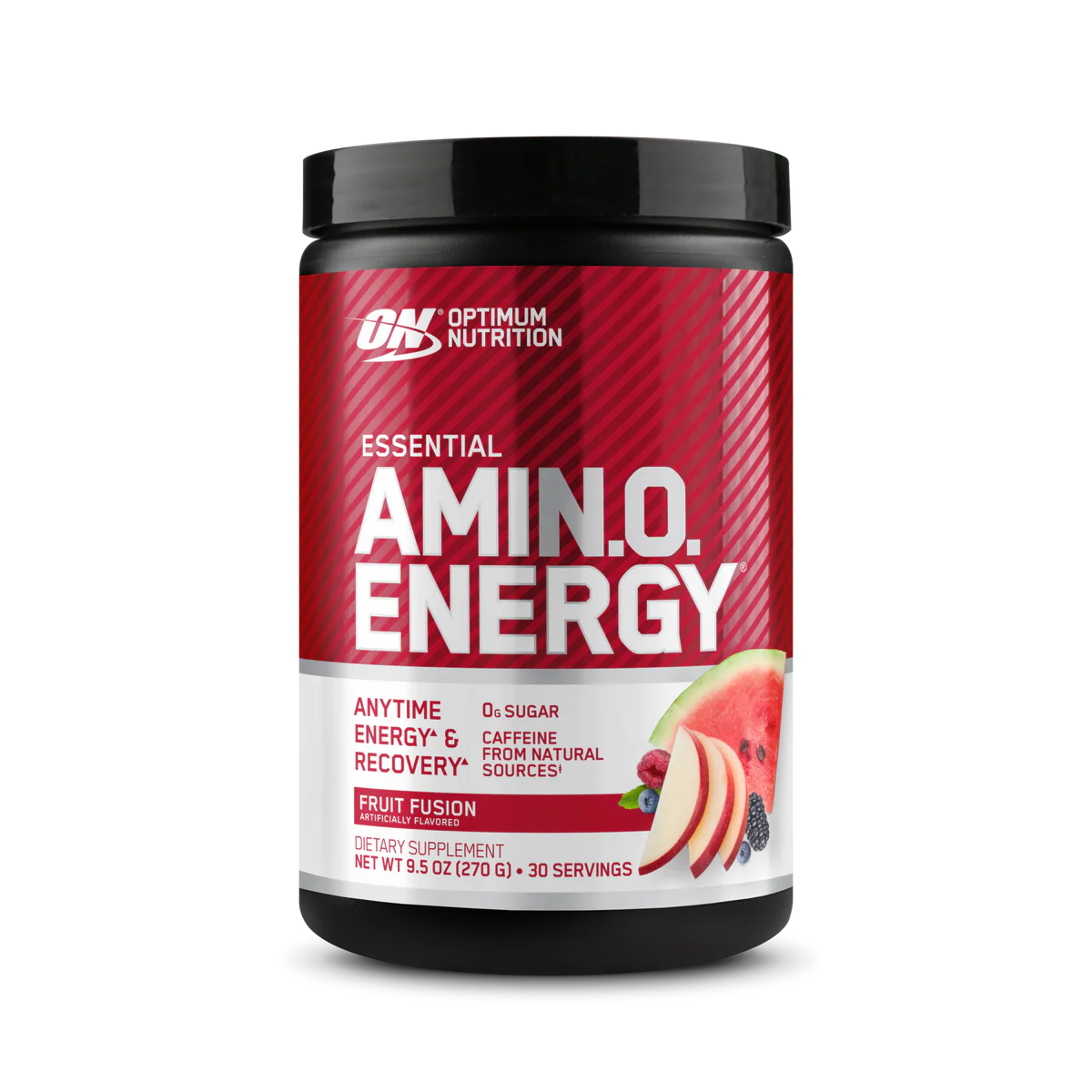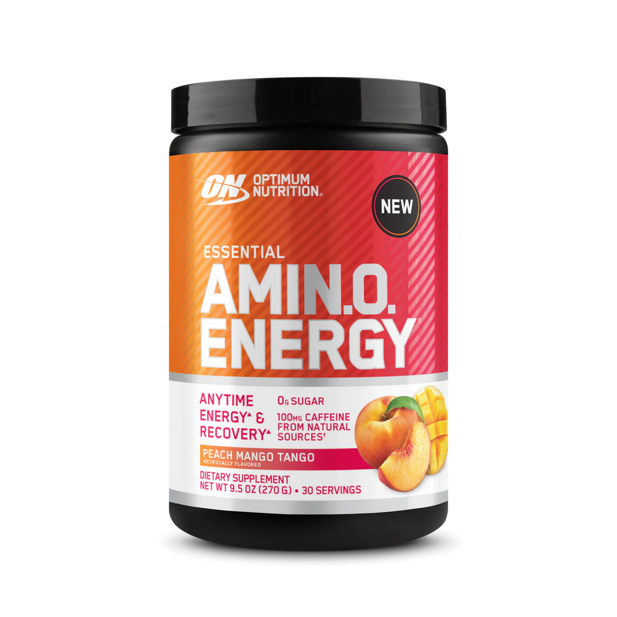 Mix up ESSENTIAL AMIN.O. ENERGY anytime you want a boost of energy, focus and muscle recovery support. Each serving provides 100 mg of caffeine from natural sources to support energy and focus along with 5 grams of amino acids for muscle support.* Beyond The Basics: 100 mg of Caffeine per Serving from Coffee Bean and/or Tea Leaf 5 Grams of Amino Acids per Serving for Muscle Recovery Support* 5 to 10 Calories Per Serving with Zero Sugar Essential Amino Acid Delivery* Supports Energy, Focus & Muscle Support*