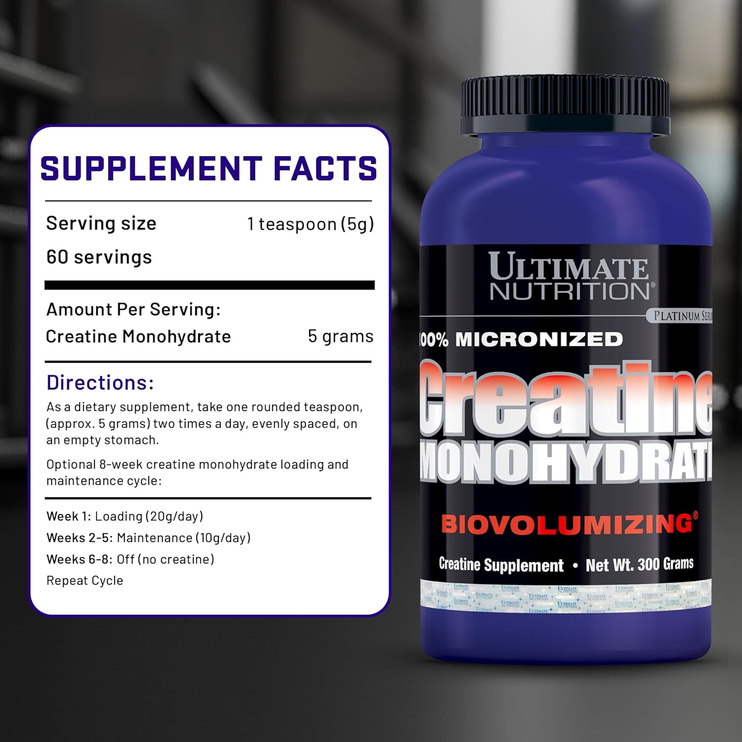 100% Micronized Creatine Monohydrate: Energize your workout with Ultimate Nutrition 100% Micronized Creatine Monohydrate. Our formula is designed to support strength, muscle growth, and fast absorption. 300g. 60 servings.