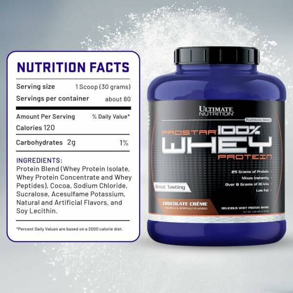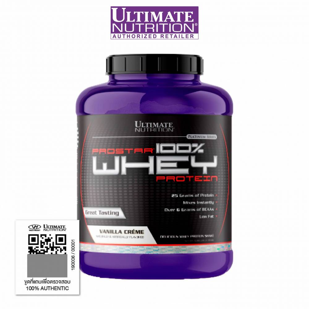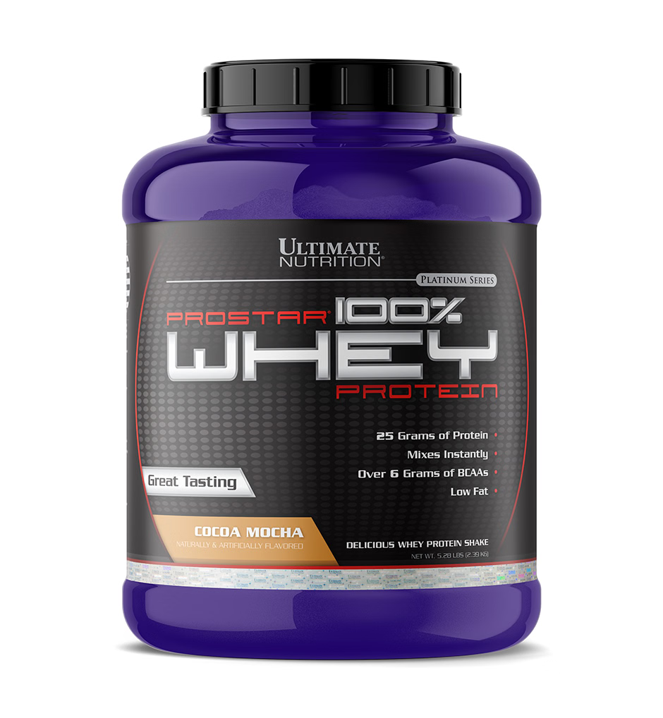 ULTIMATE PROSTAR Whey Protein To meet the needs of athletes, Ultimate Nutrition has designed 100% Prostar® Whey Protein to include all the essential and nonessential amino acids to build the muscle after intense exercise of both short and long duration. It is a customized blend of all the nutrients, including immune enhancing factors from whey protein by a specialized process. Since exercise can take a toll on the immune system, 100% Prostar® Whey Protein is the nutritional supplement of choice for those who lead an active lifestyle. It supports muscle maintenance, buildup and toning. PRODUCT HIGHLIGHTS 25 grams of Whey protein 6 grams of BCAAs 11 grams of Essential Amino Acids Mixes instantly Low Fat When Is the Best Time To Use Prostar? Prostar® Whey Protein is fast absorbing so is best enjoyed first thing in the morning and/or during the 30 minutes just before or immediately after training. Simply mix one rounded scoop with 180-240 ml (6-8 oz) of cold water in a shaker.