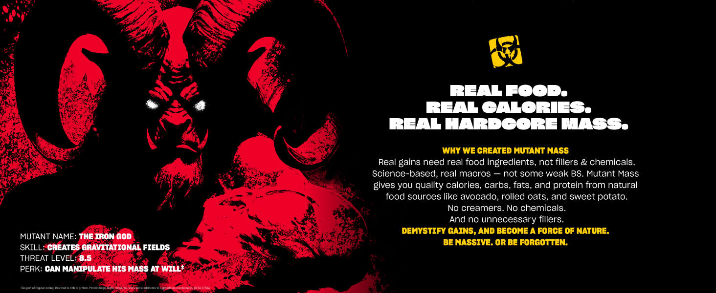 MUTANT MASS® has deliverd millions and millions of servings since 2005 to our loyal iron followers in over 100 countries. Designed for the strong and the humongous, MUTANT MASS is constantly being discovered by new hardcore and dedicated athletes of all types who seek the best.
